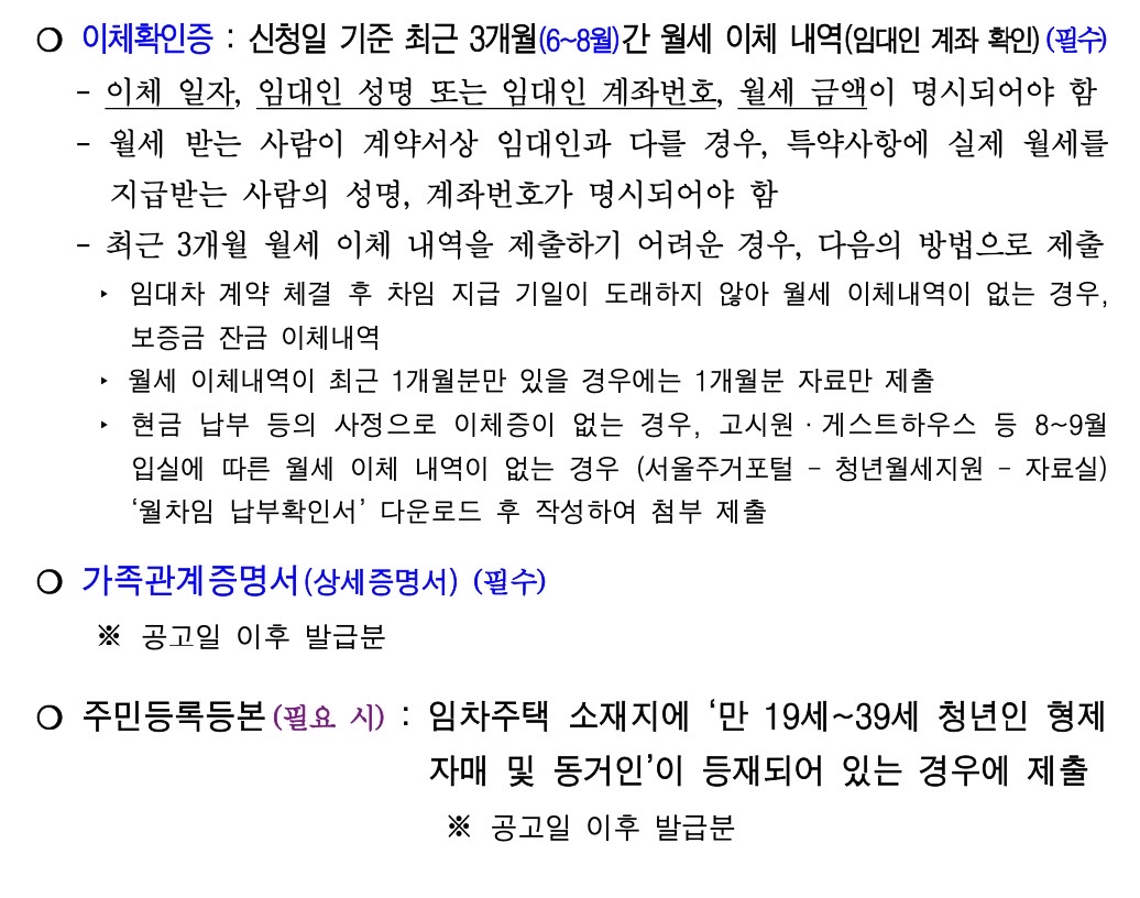 - 주민등록등본상 ‘만 19세~39세 청년인 형제자매 및 동거인’이 있는 경우에도 신청 가능